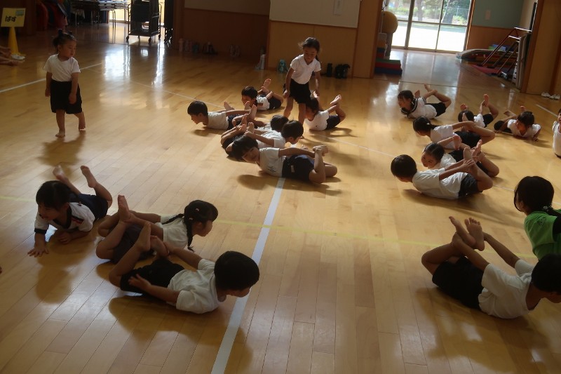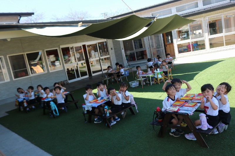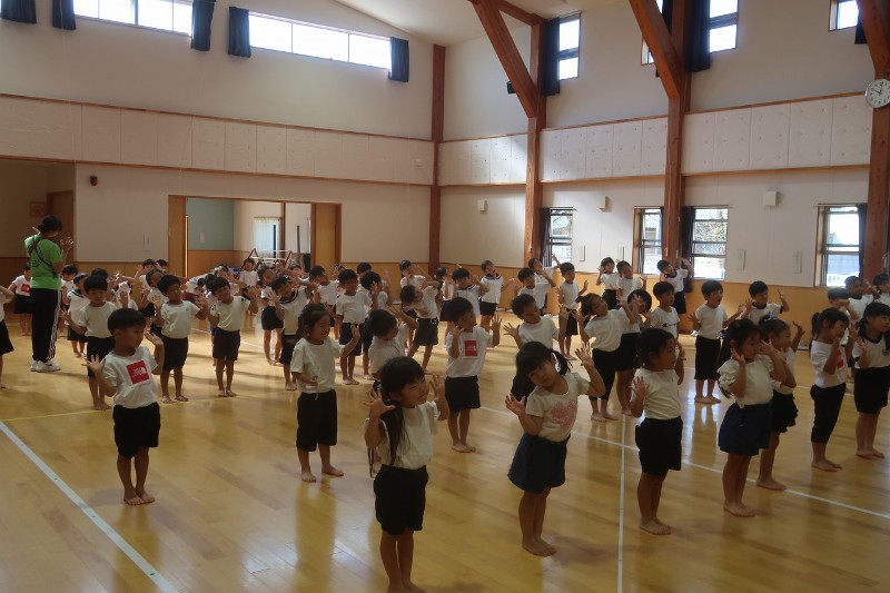 「お外涼しいね!」「楽しかった!」等笑顔が溢れる子ども達でした!またみんなで食べようね♡明日は体操教室があります!元気に頑張りましょう!!《毒島》