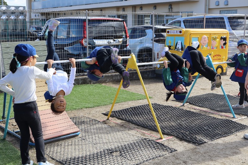 少し冷たい風が吹いていましたが今日も元気に外遊びにGo!!みんなのリクエストに答えて、赤いフラフラ橋を出しました★