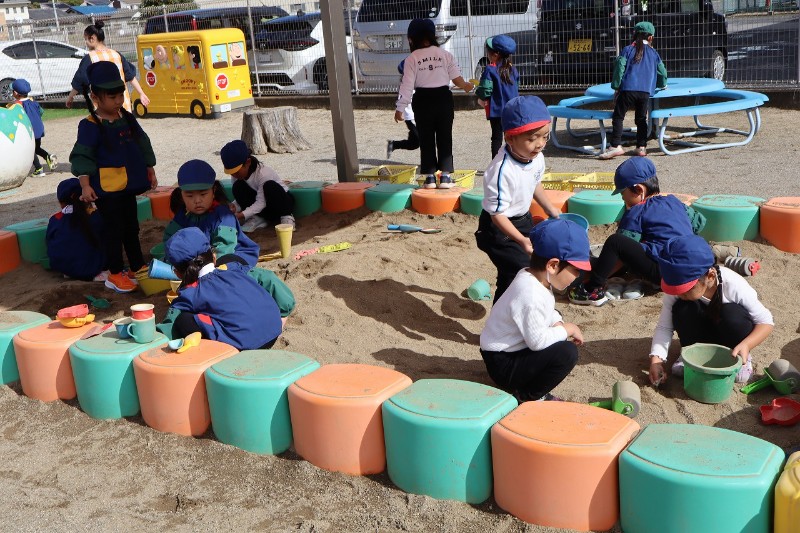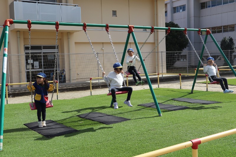1週間のスタート!お天気が良かったので、不審者訓練のあとはみんなでお外遊びにLet’s Go!!ブランコやお砂場♪