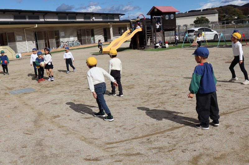 ボールをキャッチして投げて!どう逃げたらいいか自分達で考えて動いて楽しんでいました!明日はスマークでの点灯式の日です!楽しく行ってきましょうね♬《腰塚》