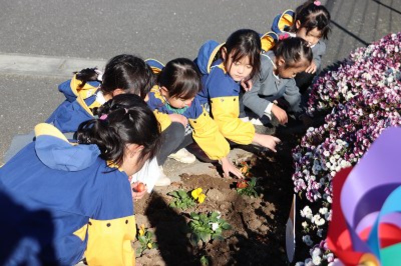 P・Sスマイルの花壇に自分で選んだ色のチューリップの球根を植えました♡花が咲くのが楽しみですね♡