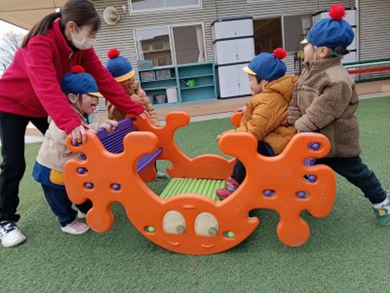 お友達を乗せて、力いっぱい漕ぎます。ギッタンバッコン♪上手に出来たかな?寒さに負けずいっぱい遊ぶぞ~☺
