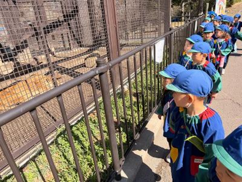 今日は年中組と未満児クラスでバスハイクへ行ってきました!年中組は念願の!!「♪みんなで汽車バス乗かって 動物園に行きたいな!」それも今日叶えることが出来ました!!今日の朝行く場所を伝えると大興奮の子ども達!バスの中ではテンションがとっても高く賑やかでしたよ♬動物園に着くと動物にくぎ付けの子ども達1つ1つの前でずっと見ていて「次に行ってみよう!」と言ってもずっと見て観察をしていました笑