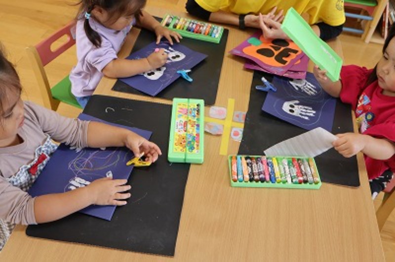 今日はハロウィンの製作をしました★何をしたかというと・・・かぼちゃの面塗りにチャレンジ!何色で塗ろうかな?どうやって塗ったらきれいかな?子ども達と考えてからスタート!