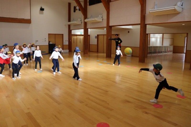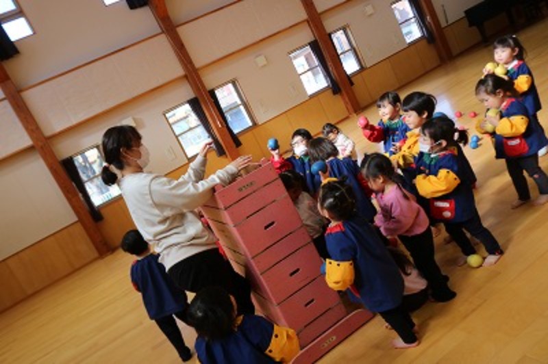 最後はボール遊び!3色あるボールをそれぞれのかごに入れたり、みんなよりも高い跳び箱のタワーに入れたり、遊戯室の中を思いきり走って「あ~楽しかった★」とうれしそうな子ども達でした!!