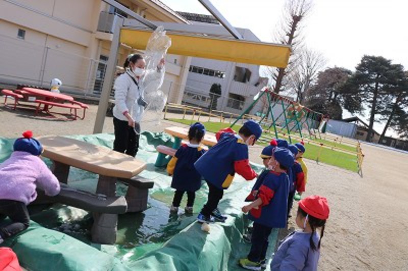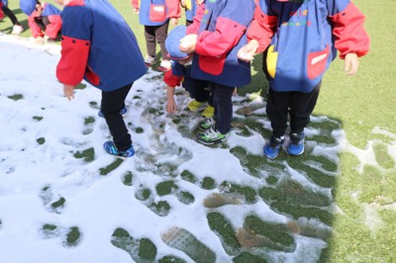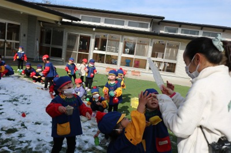 みんなよりも大きい氷に夢中になっていましたよ!「冷たいな~!」「ふわふわしてる!」雪遊びを思いきり楽しんだ子ども達でした★お家でお話聞いてみて下さい!《毒島》