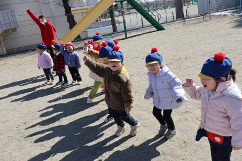 気合を入れてかけっこ、よーいドン!
