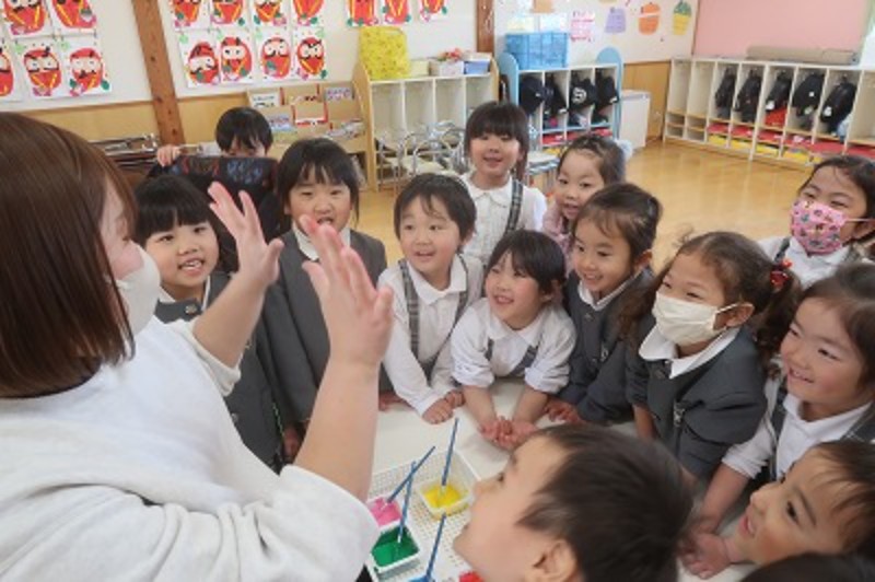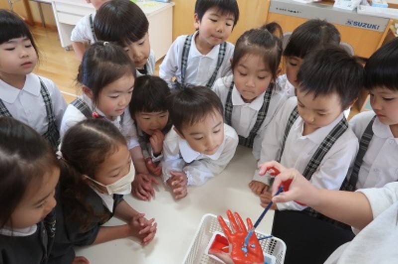 この色の時はこんなことしたくなるよね!と話しながら今日の自分はどんな色かな?と考えてみました!それを今度は製作で表していこうと思います!!みんなはどんなモンスターの色になるかな?早速明日から製作していきましょうね!!P.S.帰りに少し色のマジック!!!「赤!黄色!混ぜたら何色なるかな?」と最近SNSで流行っている歌を歌いながら混ぜると・・・?