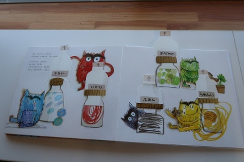 今日は自分の気持ちを色で表してみよう!という事でカラーモンスターという絵本を読み、一つ一つの色はどんな時の色かを考えてみました!黄色は楽しい時の色!赤は怒っている時!青は悲しい時、ピンクは・・・?