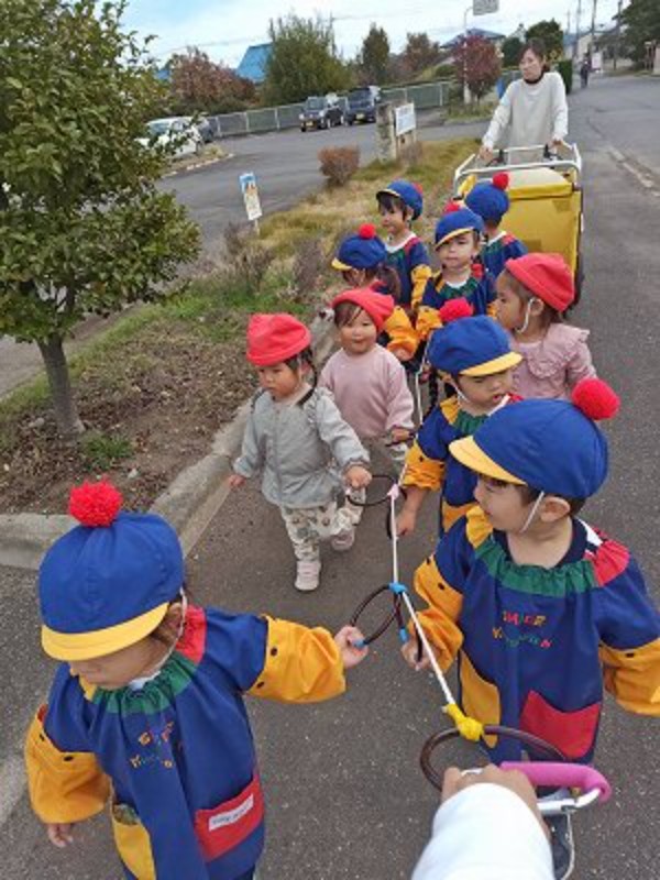 今日の未満児クラスのお友達は歩いてカルトピアまでお散歩に行ってきました♪1・2♪ 1・2♪
