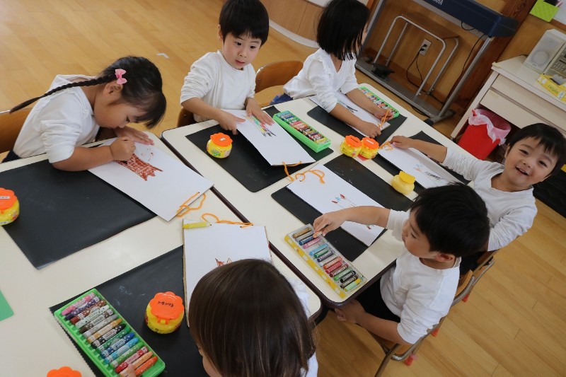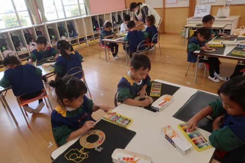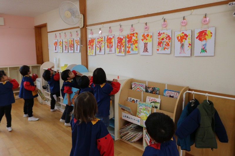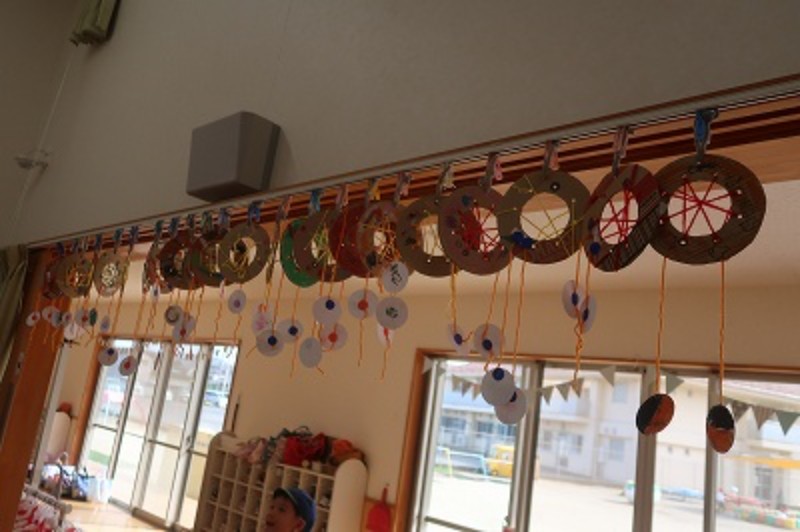 製作後、お部屋に飾るとお友達と自分の物を見せたり、何を描いたのか話してみている姿が見られました!