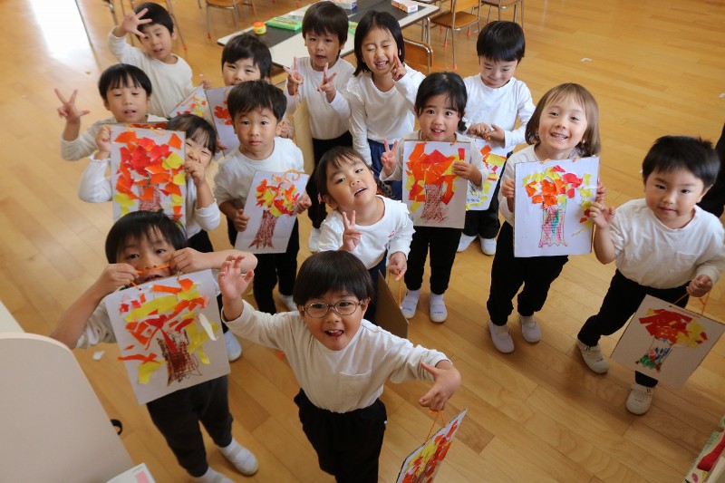今日は秋ならではの製作をしました★秋と言えば・・・紅葉!木の幹に色を塗ったり、好きな色の折り紙をちぎったり、一人ひとり違う作品ができあがりました!