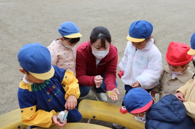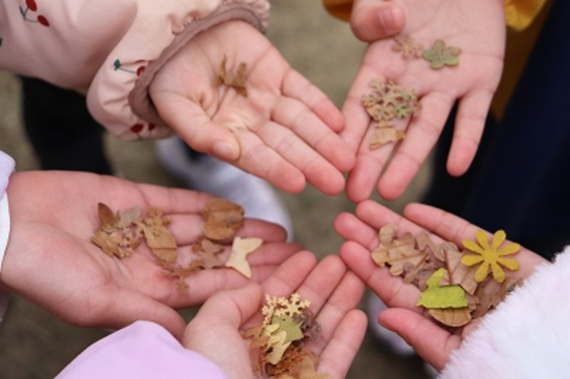園庭に落ちている落ち葉を使って素敵な遊びを展開してくれた稲村先生✨落ち葉を型抜きし秋の自然でたくさん遊ぶことが出来ました!朝から目を輝かせながら楽しい遊びに夢中になって素敵な時間になりました☆