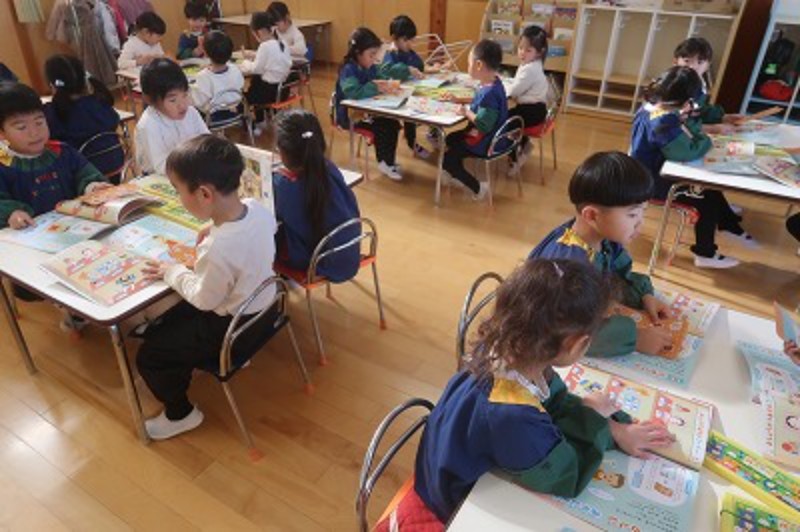 今日から1日保育のスタート♬発表会練習の前に月刊誌をしました!