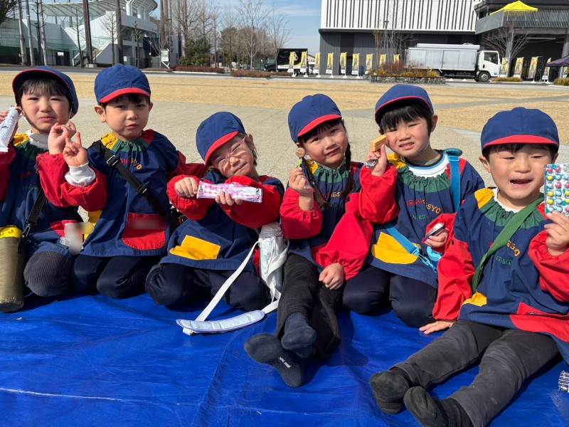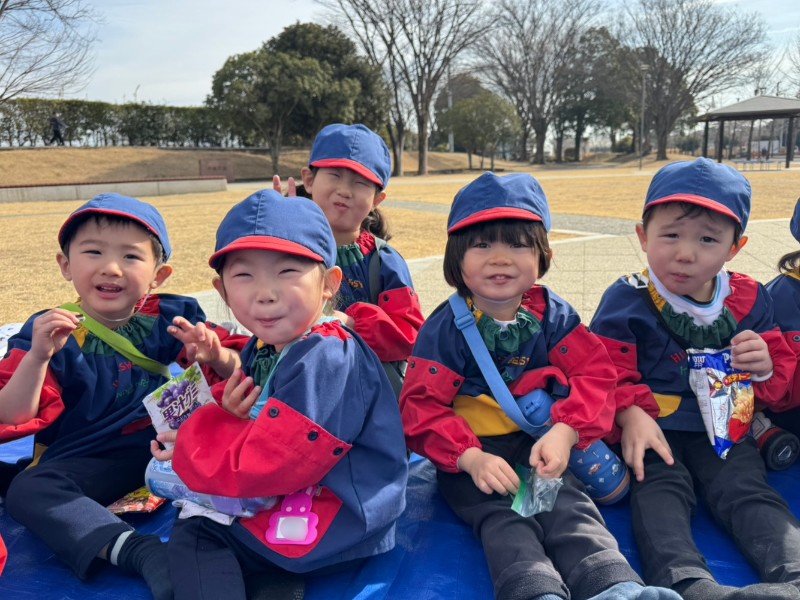 今日は暖かなお出掛け日和だったので・・・おやつを持って!!念願の園外保育に行ってきました!!!やってきたのは運動公園!運動公園に着くと早速おやつタイム♪