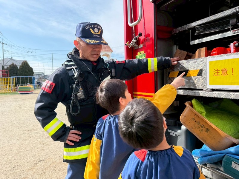 そして消防車を近くで観察したことで新たな質問ができ、直接消防士に聞く姿も見られ消防車についてさらに詳しくなりました♪
