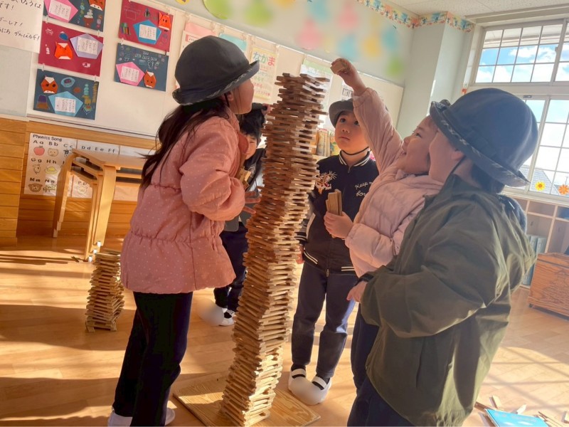 今日の一コマを紹介します!!カプラで遊んでいると・・・「どこまで積めるかなー?」