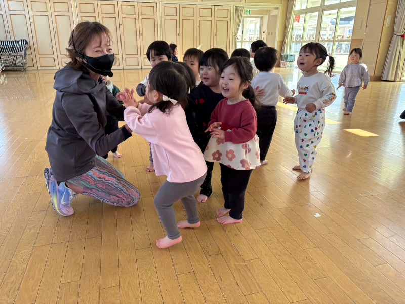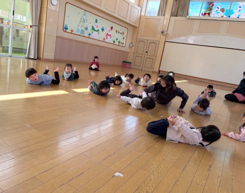 どうしたらいいかな??手を動かしてヒラヒラさせたり、思いっきり走ったりして風とおともだちになりました♥ps.キティ組での最後のダンス教室。カメのポーズも上手になってきましたよ!!