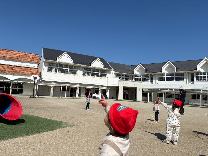 綺麗な青空の中「ひこうきだー!!」「どこどこ??」みんなで飛行機にばいば~い!!