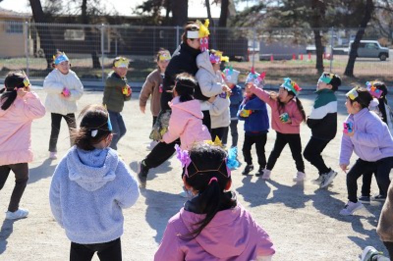 「鬼はどこから来るのかな?」あたりをキョロキョロしていると・・鬼が・・!!!「鬼は~外! 福は~内!」みんなの強い心で無事に退治出来ました。今日、退治した鬼はどんな鬼だったかな?お家でお話してみて下さいね!
