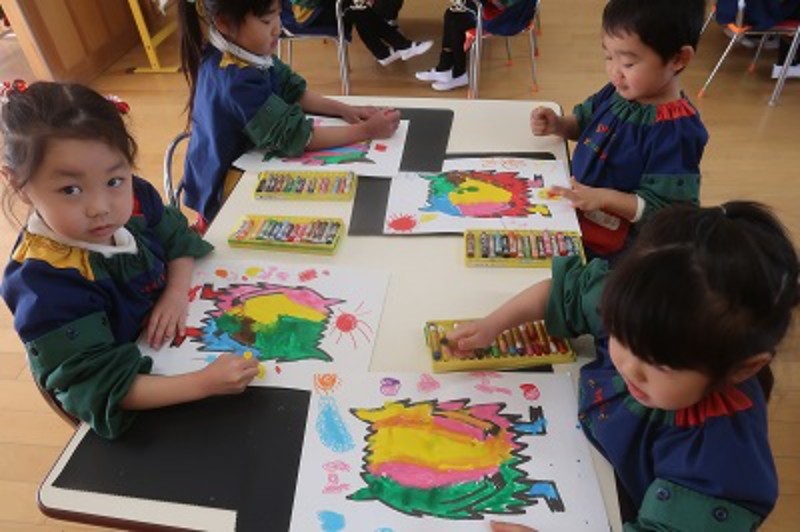 今日は自分の気持ちを表現したカラーモンスターの周りに絵を描きました!