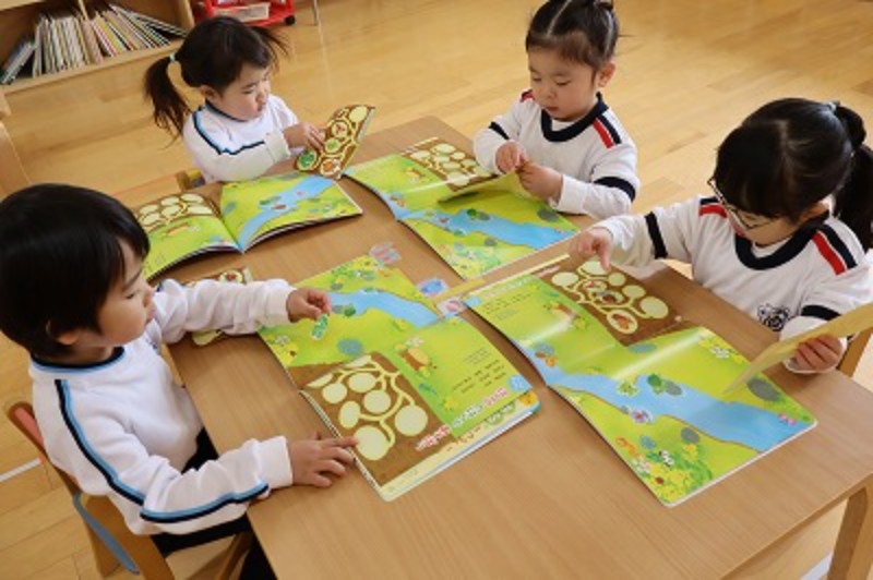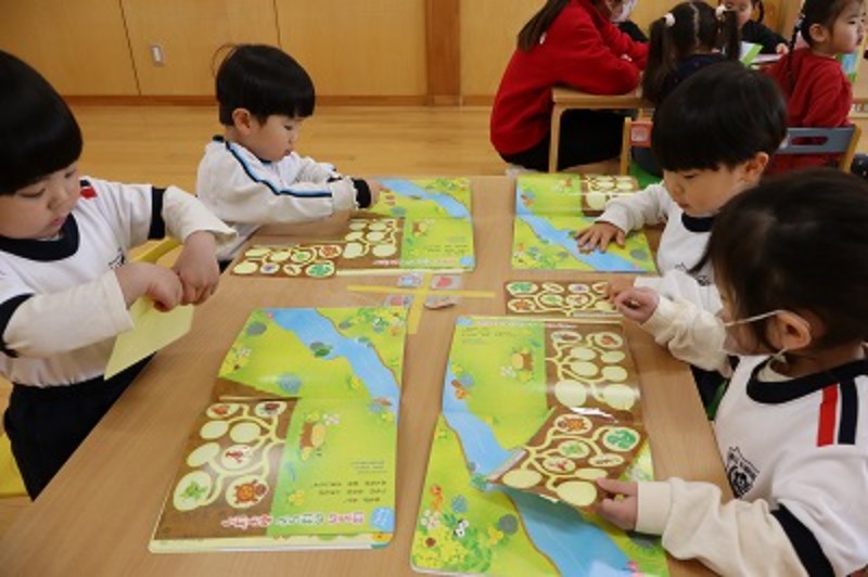 「カエルさん春だよ~」「お水で遊ばせてあげよう!」とシールを貼りながら想像して楽しんでいました☺来週も楽しいことがいーっぱい♪元気な登園待っています!《荻原》P.S.脱いだスモックは畳む★!