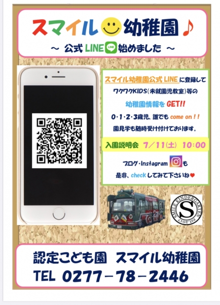 3(金) 体操教室7(火) 園内七夕・英語教室8(水) 月謝集金日(7月分)10(金) 体操教室11 (土) 令和3年度 幼稚園説明会(新入園児対象)14(火) 英語教室15(水) 誕生会(7・8月生まれ)17(金) 体操教室21(火) 英語教室22(水) 終業式(半日保育)23(木) 海の日(休園)24(金) スポーツの日(休園)27(月)~31(金) 夏季希望預かり